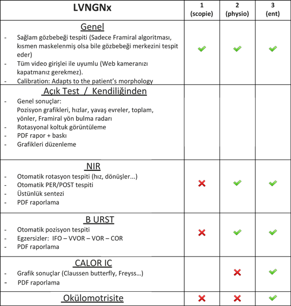 - Vestibülookuler tepkilerin planlarda veya yarı dairesel kanallarda ya da doğal hareketler sırasında farklı frekanslarda ölçümü