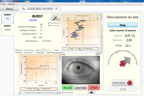 Hastanın yüzüne kolaylıkla oturan nistagmoskop içeriğindeki yüksek çözünürlüklü kızıl ötesi kamera sayesinde mükemmel kalitede güvenilir görüntüler elde etmemize yardımcı olur. Hastanın göz hareketleri kamera sistemi sayesinde ekrana yansıtılarak anomaliler ve nistagmus saptanabilir. Alınan görüntüler sonradan incelenmek için CD üzerine kaydedilebilir.