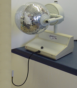 Çok basit, kullanımı çok kolay, ama vestibular tedavi için gerekli bir makine. Bu Stimülatör yoğunluğu ve doğruluğu ayarlanabilir ışıkla aydınlanmış bir yansıtıcı yönlü toptan oluşur ve böylece yansıtılan parçaların alanını değiştirmemize izin verir. Bu top tüm makineyi 3 düzleme göre aydınlatmak amacıyla her iki dönme ekseni etrafında hareket edebilir: Böylece tüm görsel gösterge ünitesi taranır
